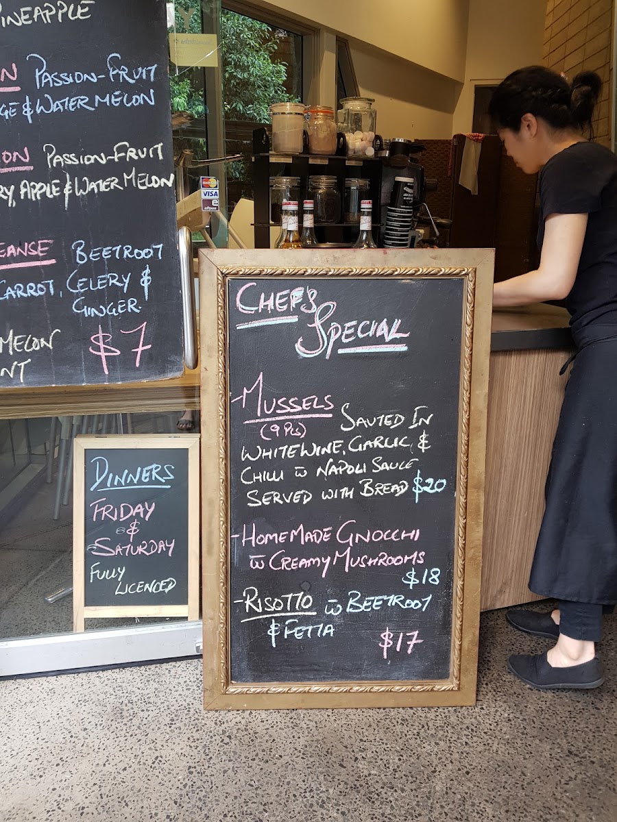 The menu is structured to cater to casual dining with an emphasis on simple, well-prepared meals and a streamlined offering to maintain quality and service efficiency. Visitors typically use the menu for relaxed, informal meals and coffee orders.